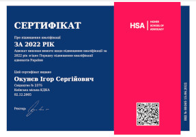 Ігор Окунєв надає консультації клієнтам та здійснює підготовку правових висновків з різних галузей права.
